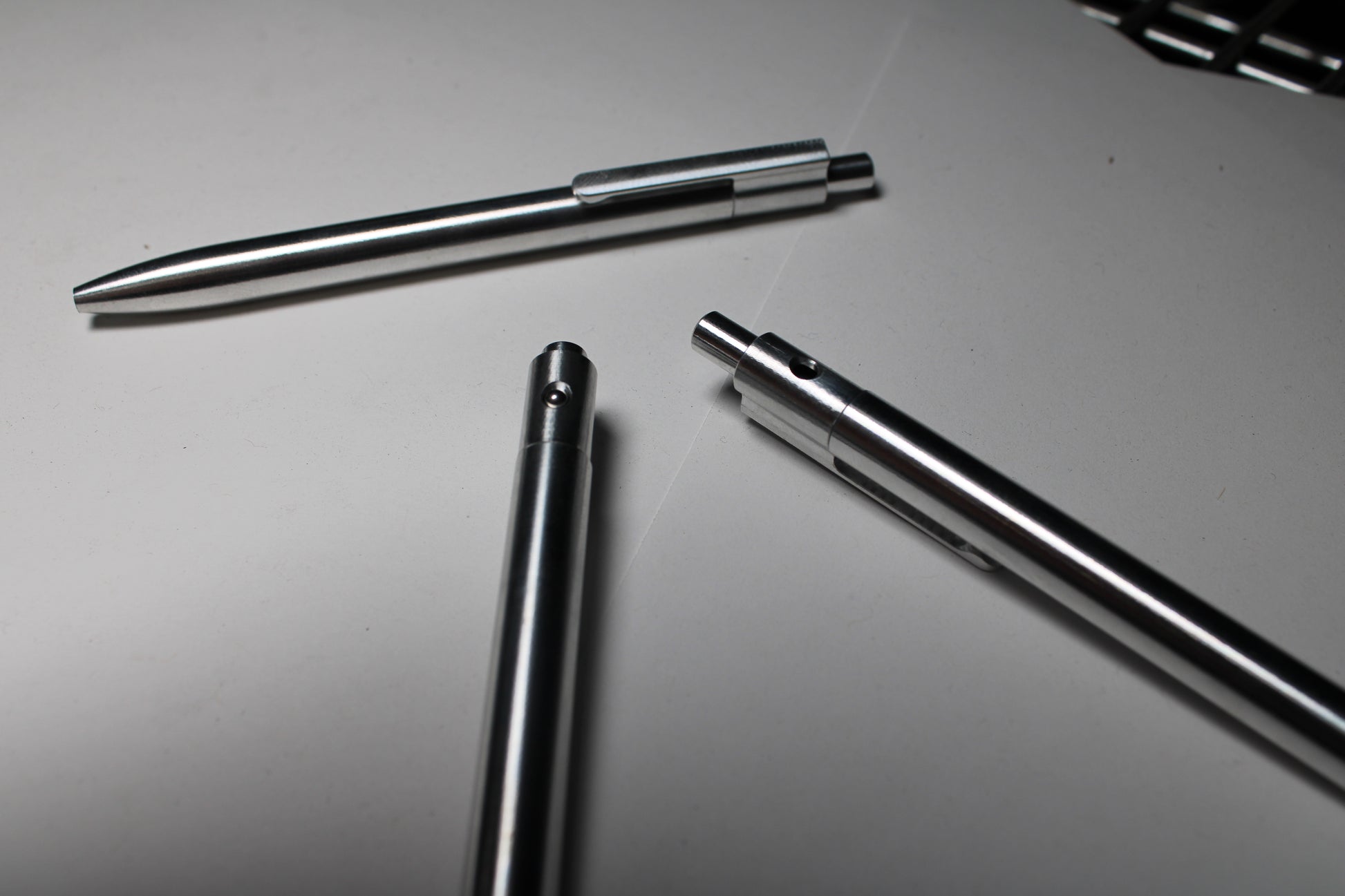 Tip bore drill is aligned and offset with great care and is machined to a tolerance of just 0.001" or 25 micron to hold the tip of the Schimdt 9000 perfectly without any wiggle. Solid material is drilled out with a carbide drill perfectly true over an extreme diameter to depth radio, in order to fit the refills tightly without rattle.