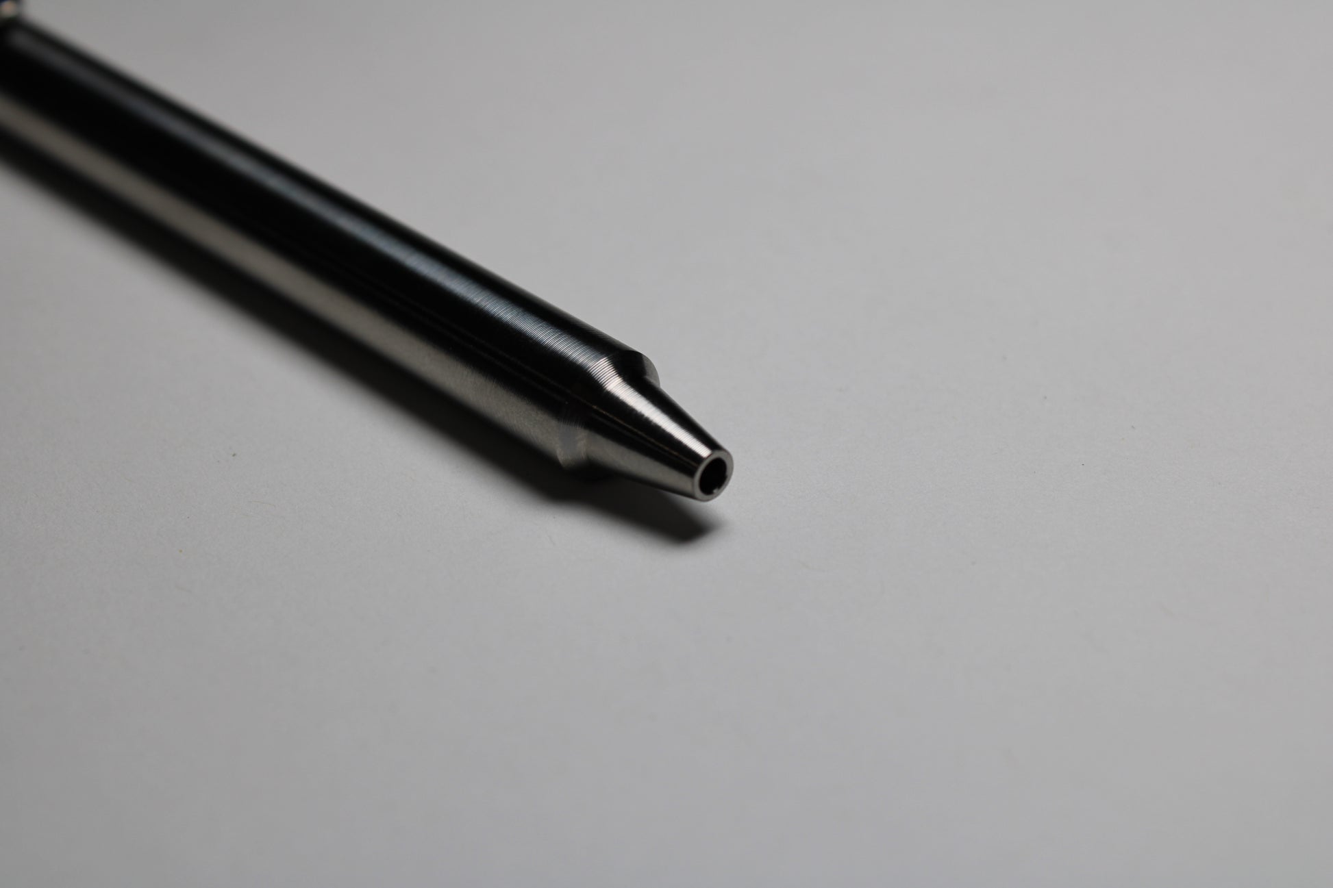 New enhanced tip bore size specifically for the Pilot G2. New 2.5mm (0.0984") drill yields a tighter fitting tip for the refill. Tolerance for these is 0.0984"-0.099" with a 0.099" pin as a no-go. Refill has no discernible wiggle. This is tighter than previous models that used a slightly larger drill and tolerance from 0.100"-0.101".