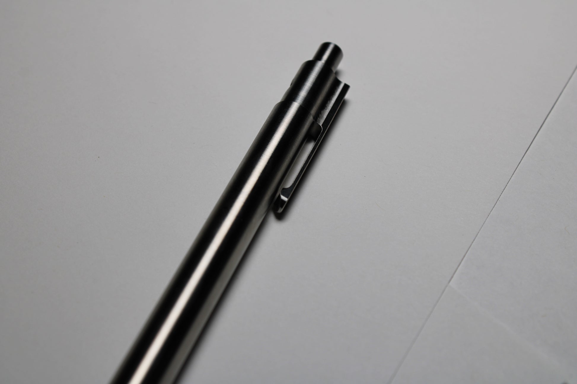 A new unique design with a single 0.38" diameter grip and stepped nose section. Made entirely out of the tough and hard solid bar stock 6Al-4V Grade 5 Titanium. Clip design is improved with a tighter fitting gap and more flexibility.