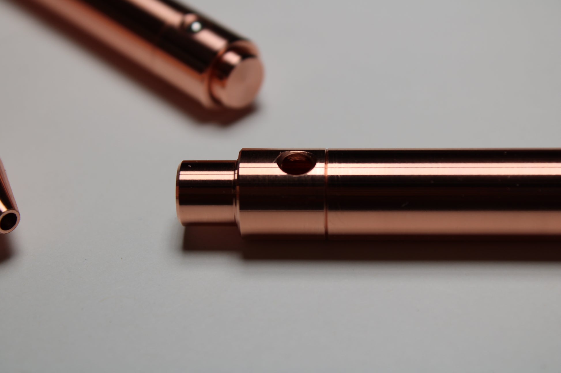 The large solid copper body is extremely substantial and has some serious heft to it. Action with the heavier copper button is properly solid.