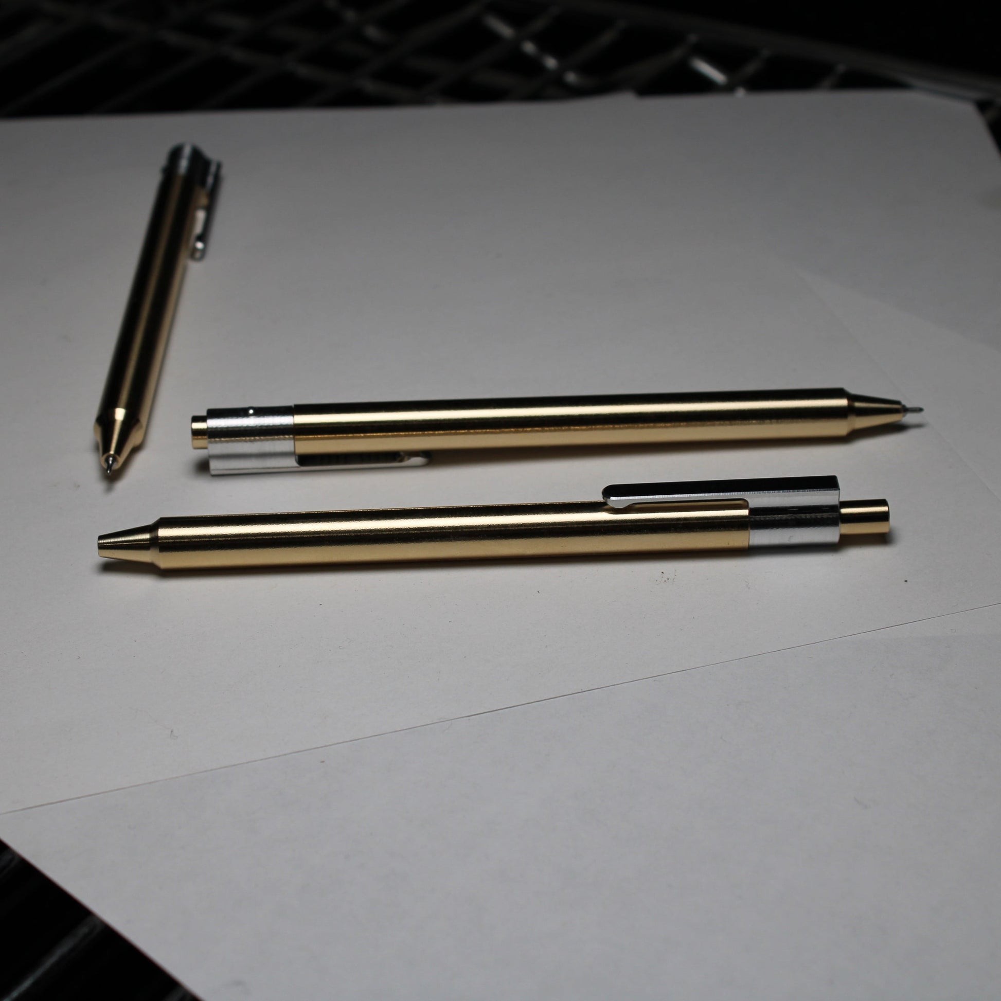 Made out of the very beautiful 464 Brass with a contrasting 6061 Aluminum clip.