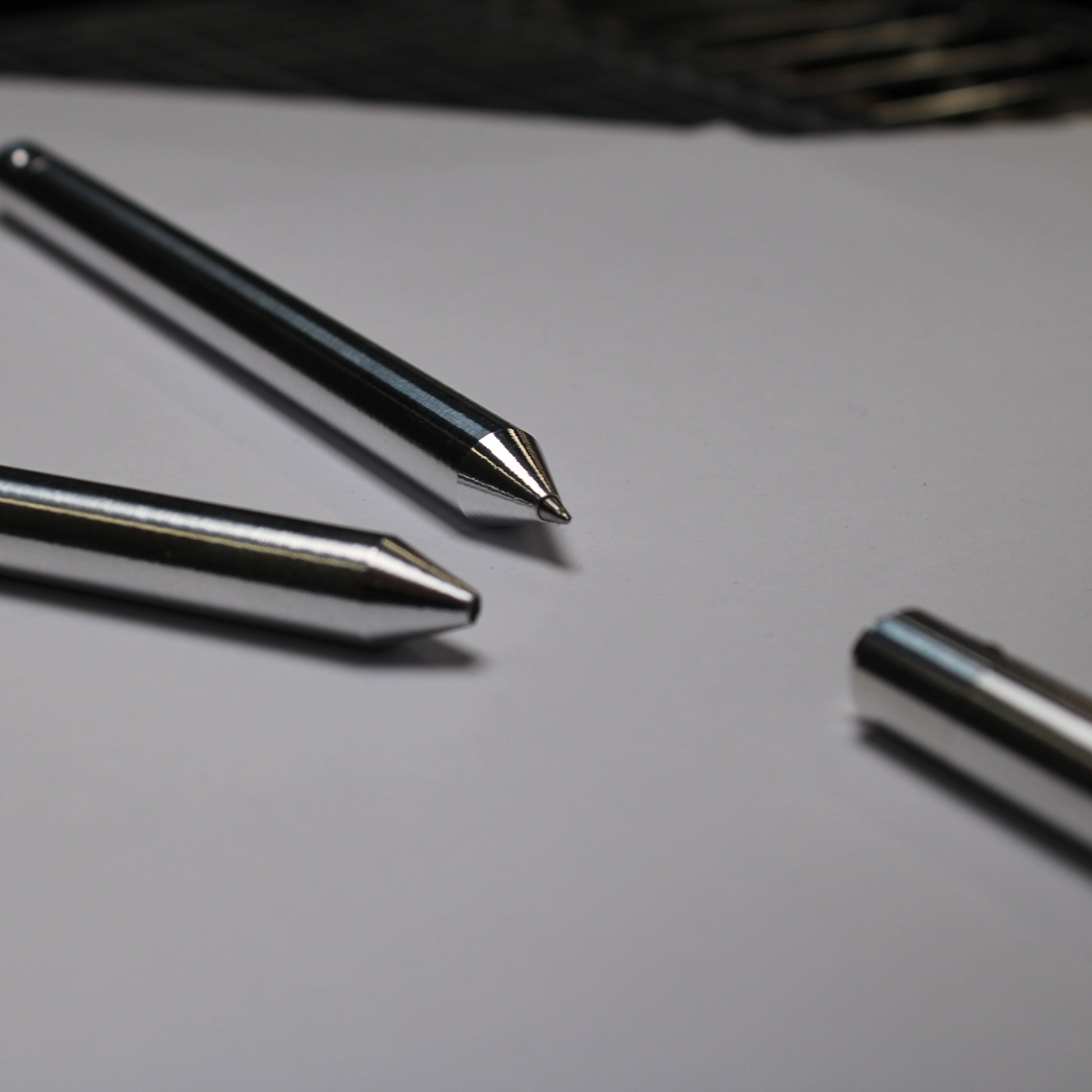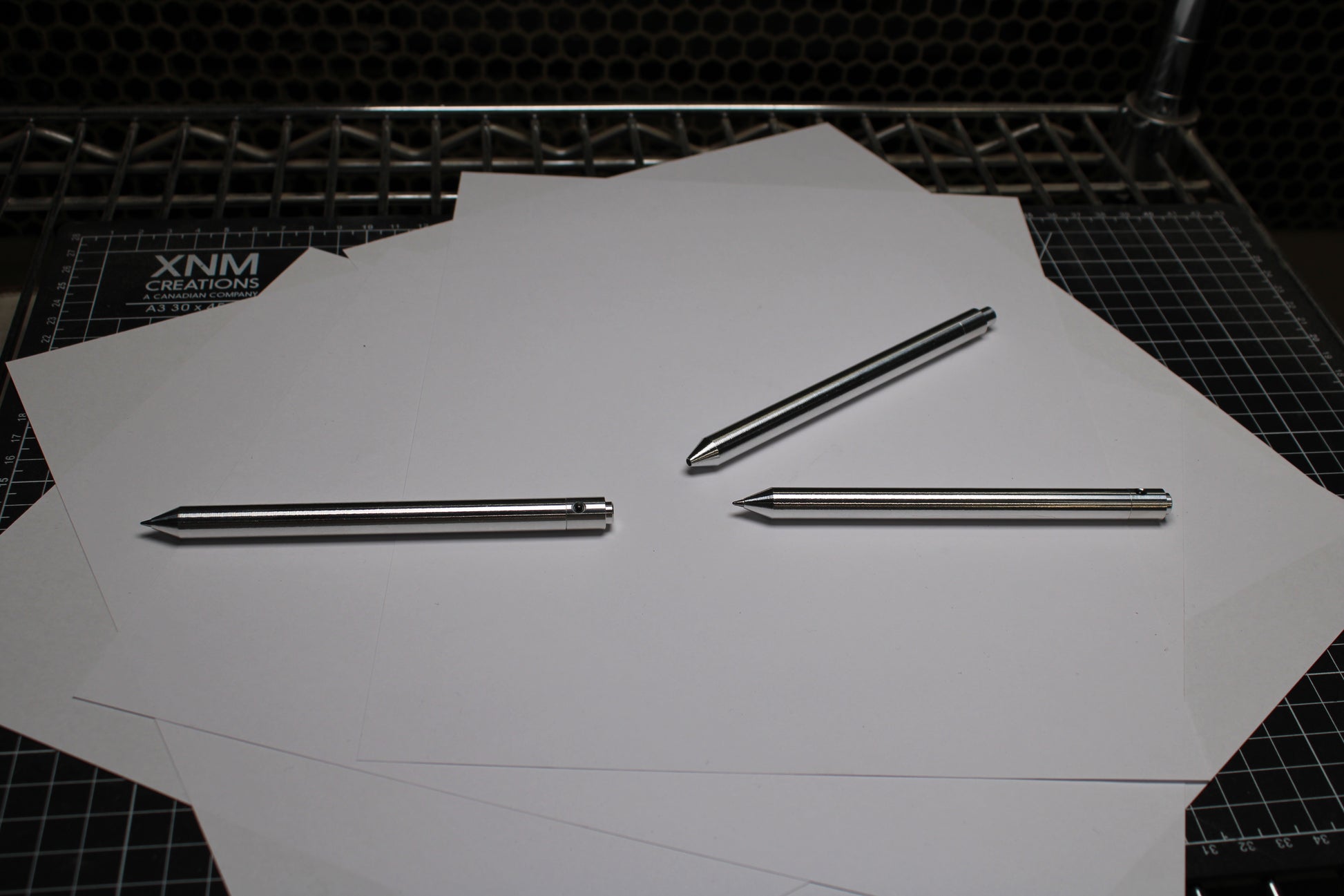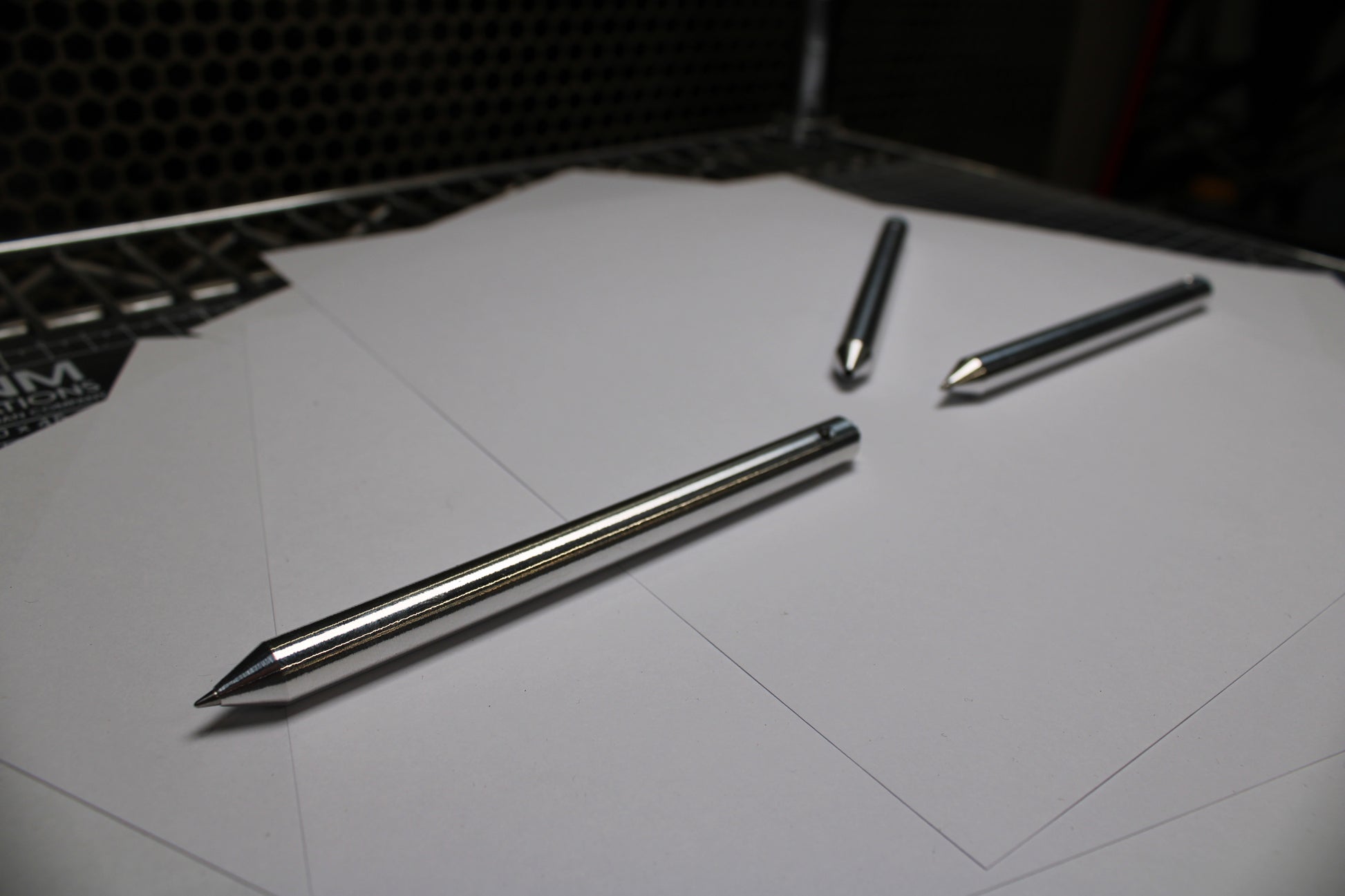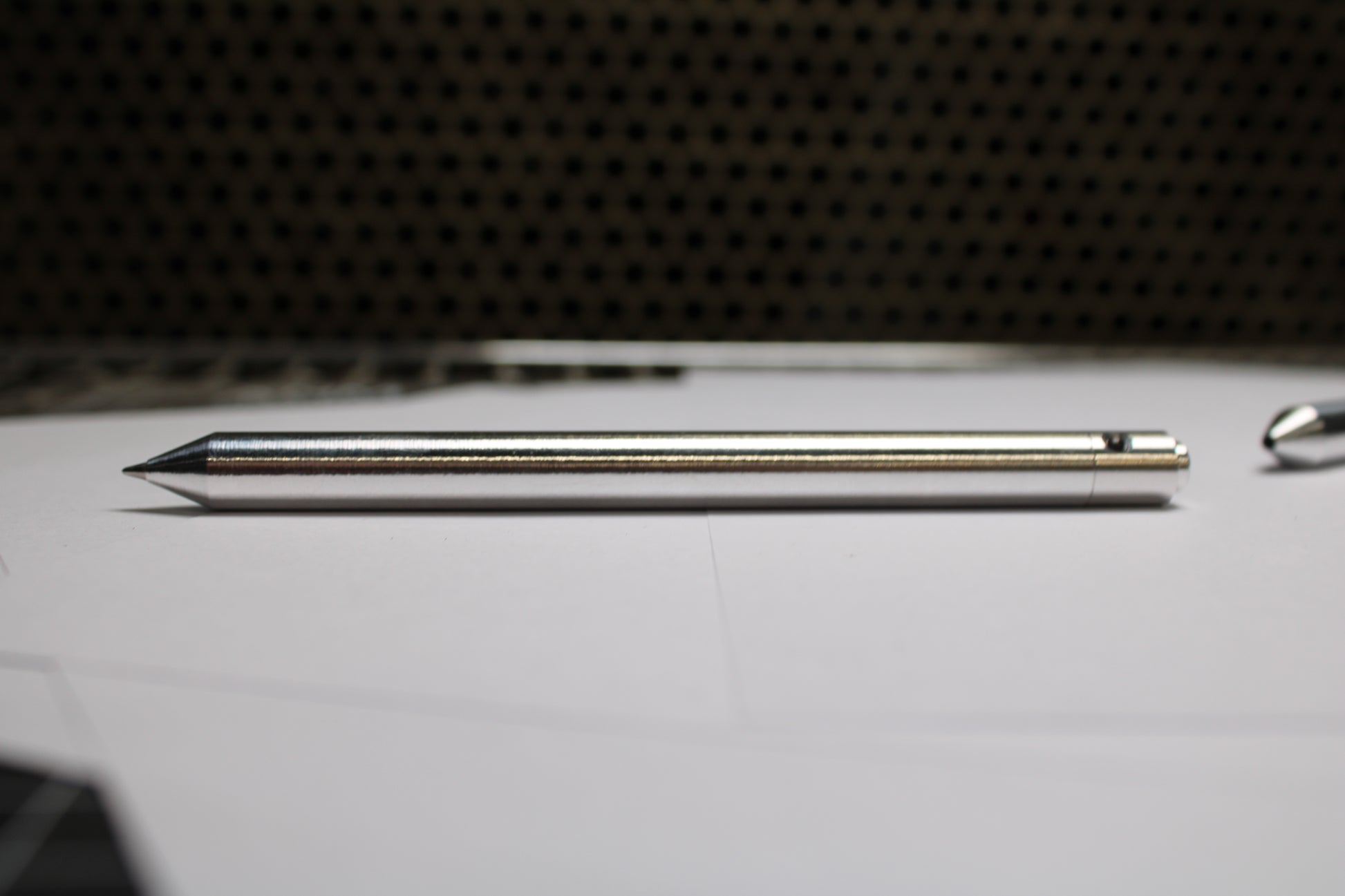 A light note taking weight at 16.88g in a 0.38"(9.65 mm) diameter with a smooth body that varies in texture towards the conical business end for suitable grip. Raw aluminum is a softer metal and will wear against harder materials, but the shiny lustre and light weight make it an attractive option.