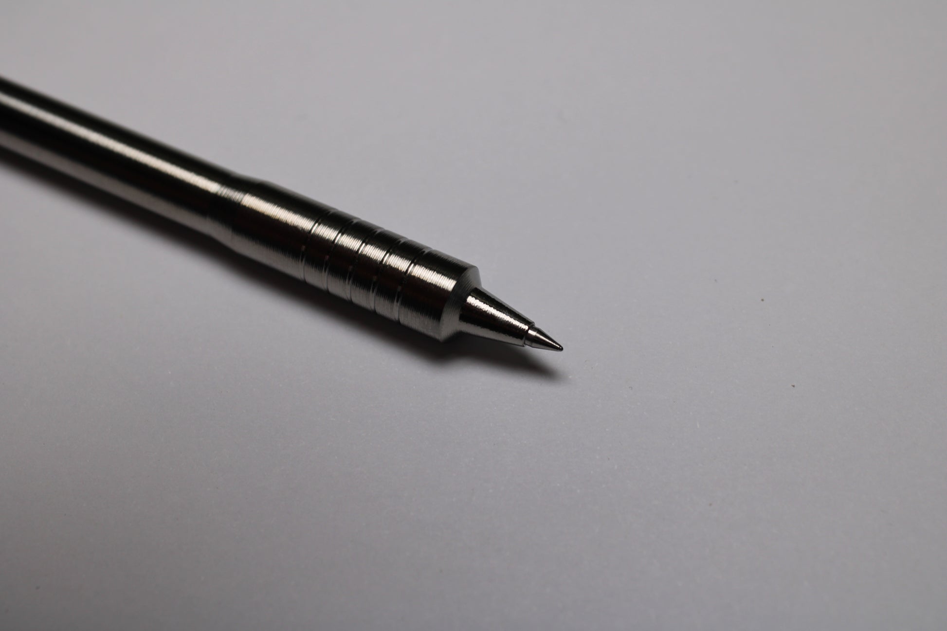The mechanism comes equipped with stainless steel bearing balls. Tip details are extremely tight with a small land between the refill, and the conical section.