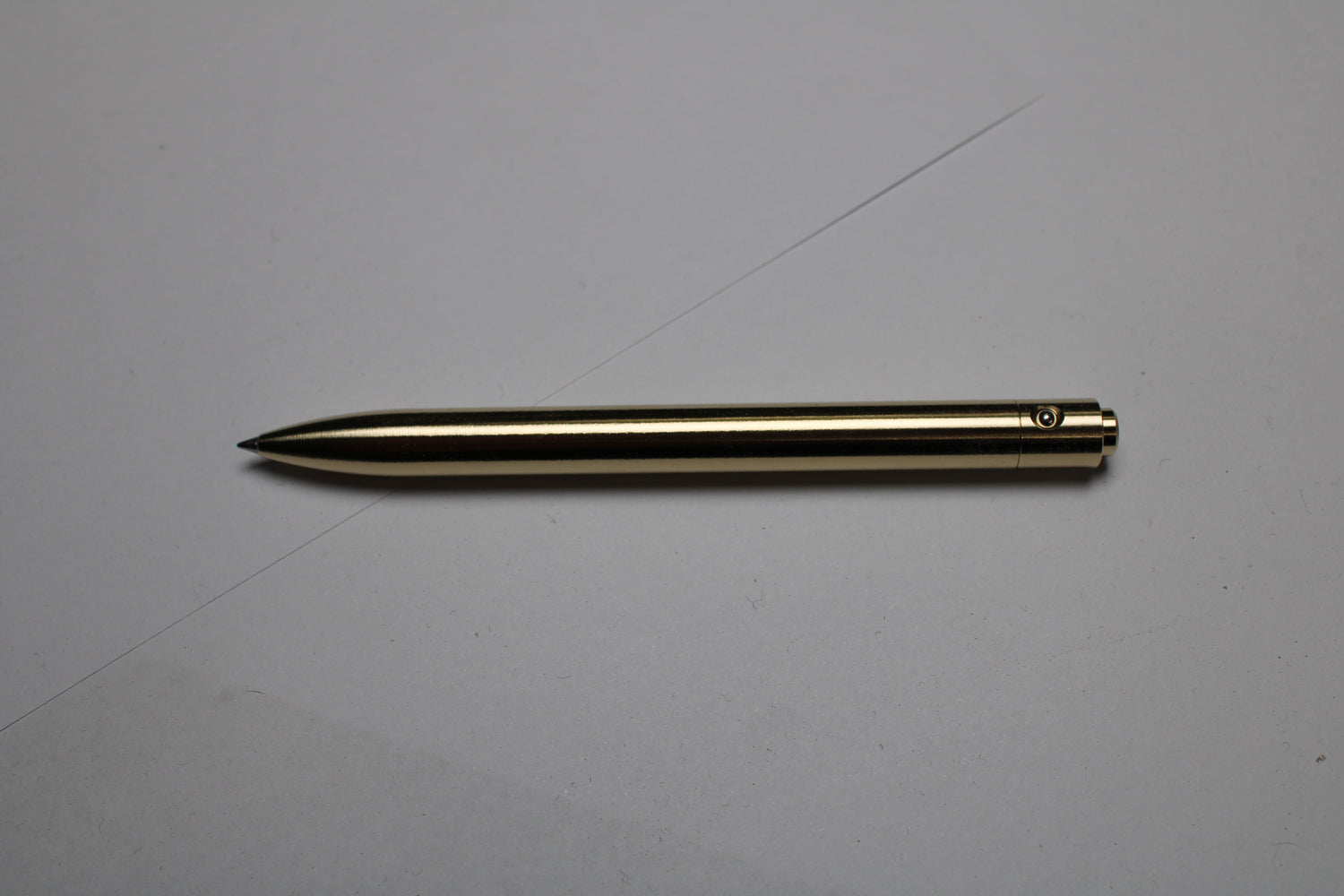 Minimal and clean design coupled with the Schmidt P8126 refill. Proper allowance and a custom precision spring allow the refill to operate very smoothly.