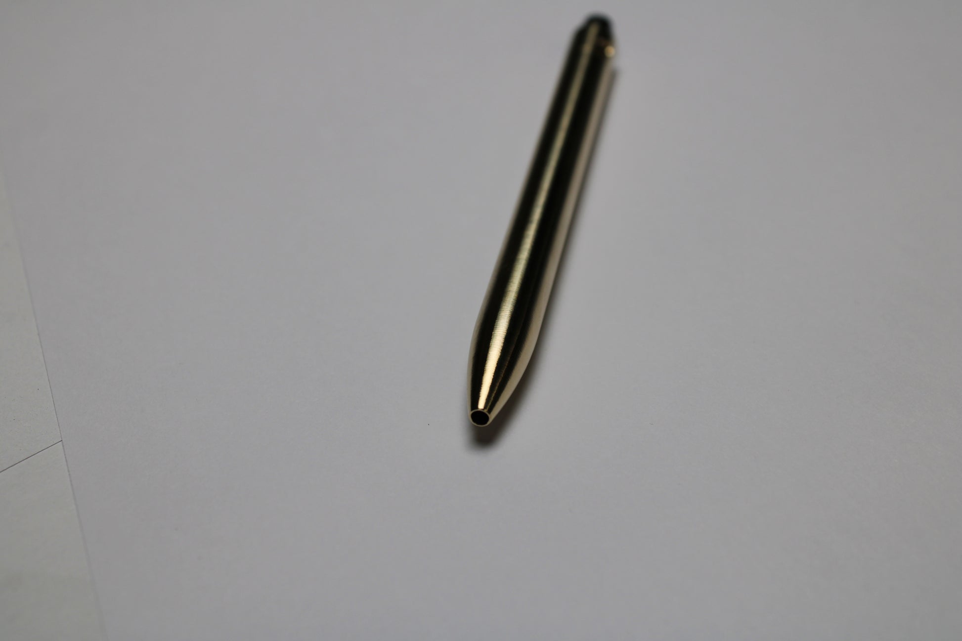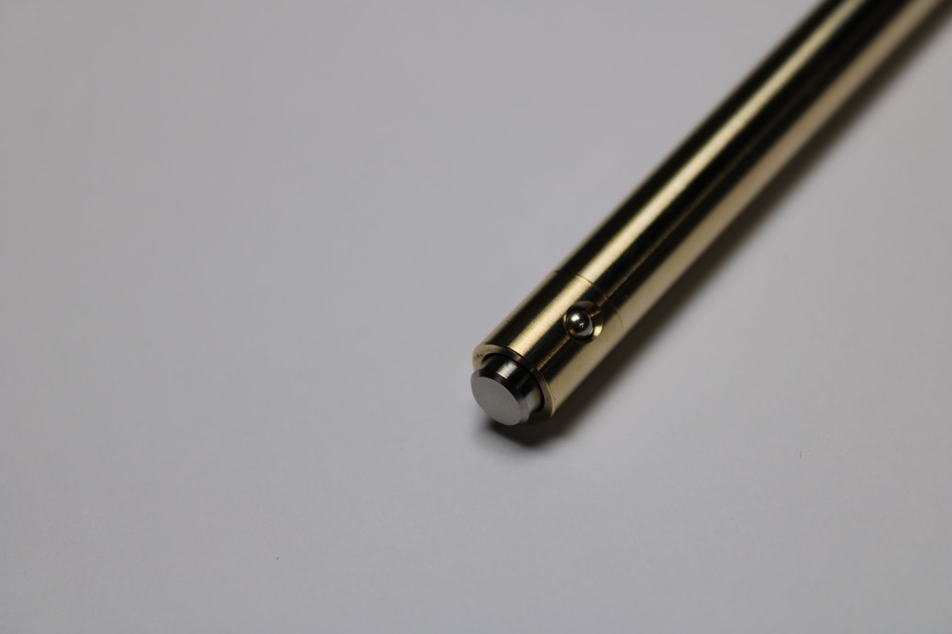 Design in a 0.38"(9.65 mm) diameter. Smooth and tough C63000 Bronze. Uses a 1/8" (0.125") bearing ball and a custom made precision secondary spring. Tip details are extremely tight with a small land between the refill, and the radiused section.