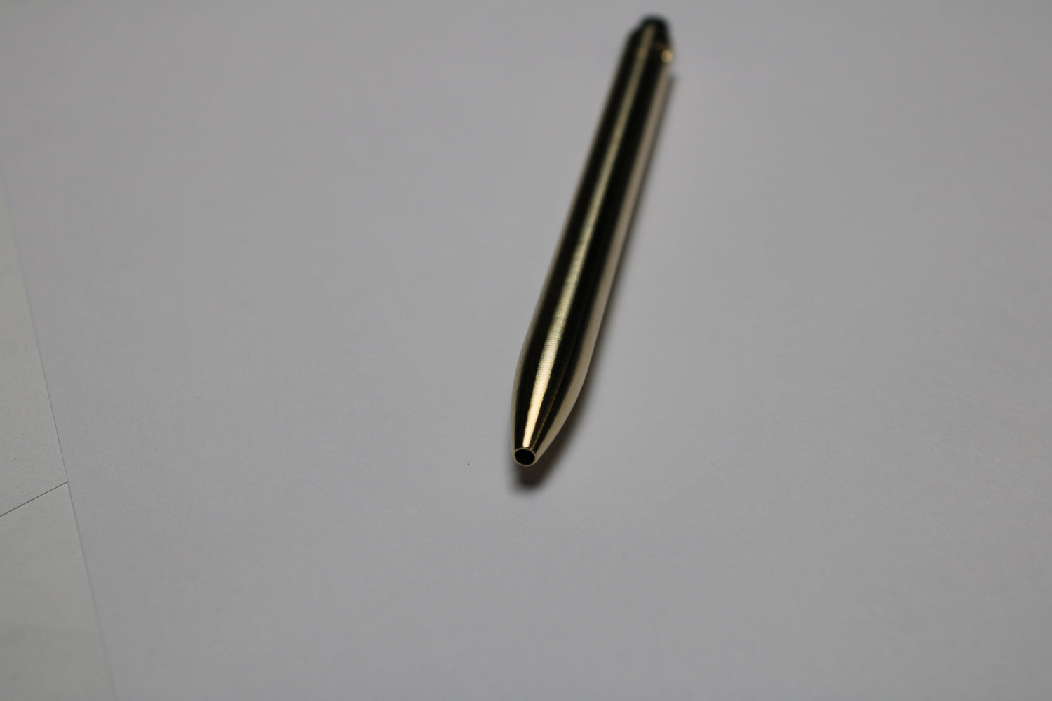 Design in a 0.38"(9.65 mm) diameter. Smooth and tough C63000 Bronze. Uses a 1/8" (0.125") bearing ball and a custom made precision secondary spring. Tip details are extremely tight with a small land between the refill, and the radiused section.