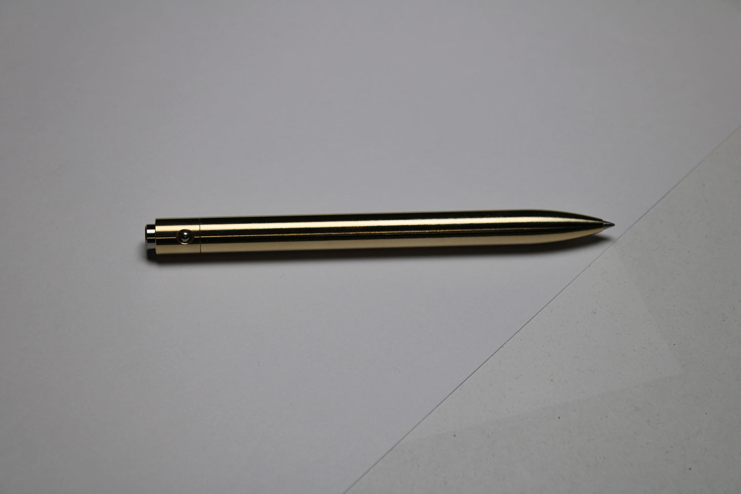 Minimal and clean design coupled with the Schmidt P8126 refill. Proper allowance and a custom precision spring allow the refill to operate very smoothly.