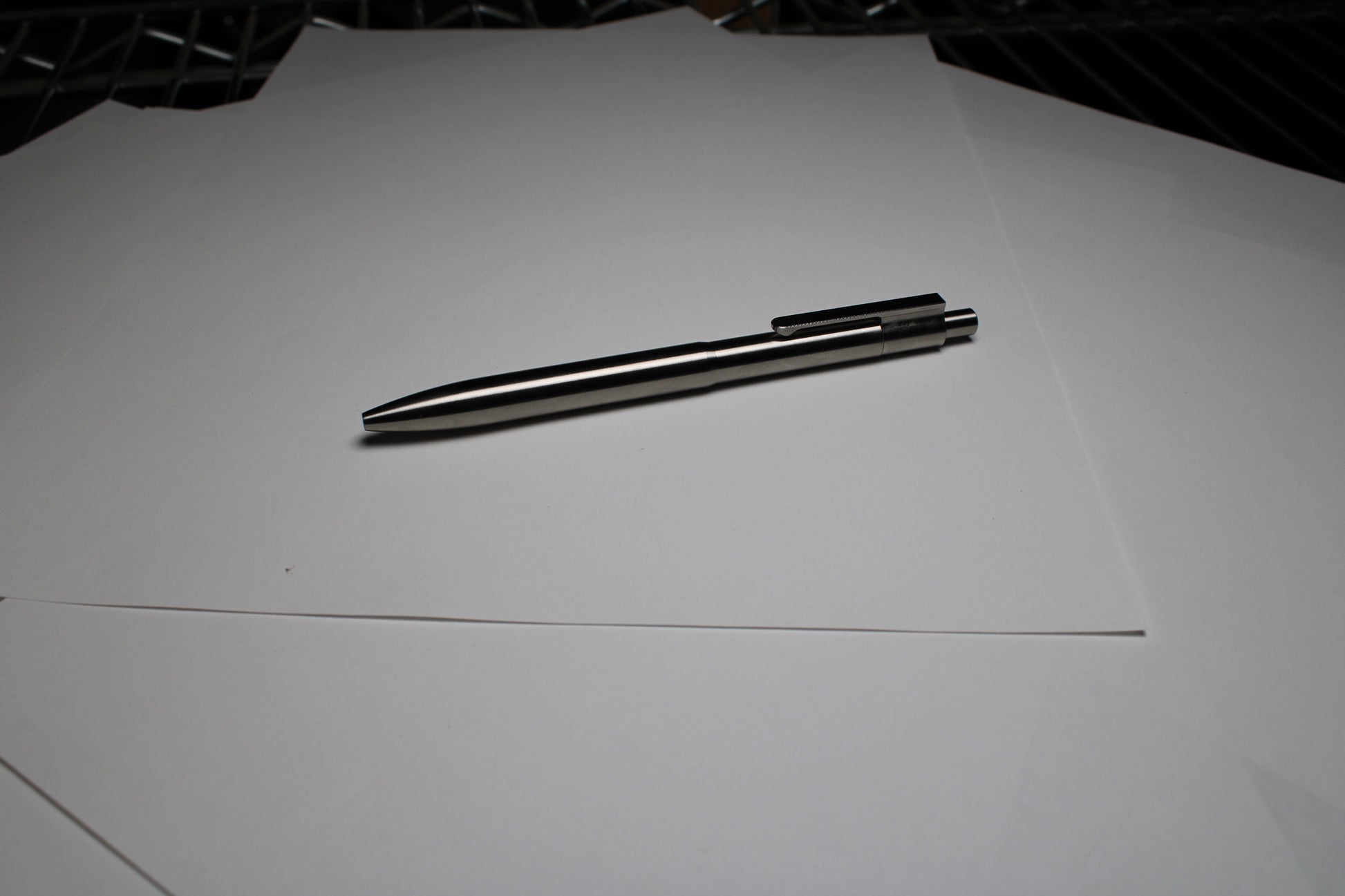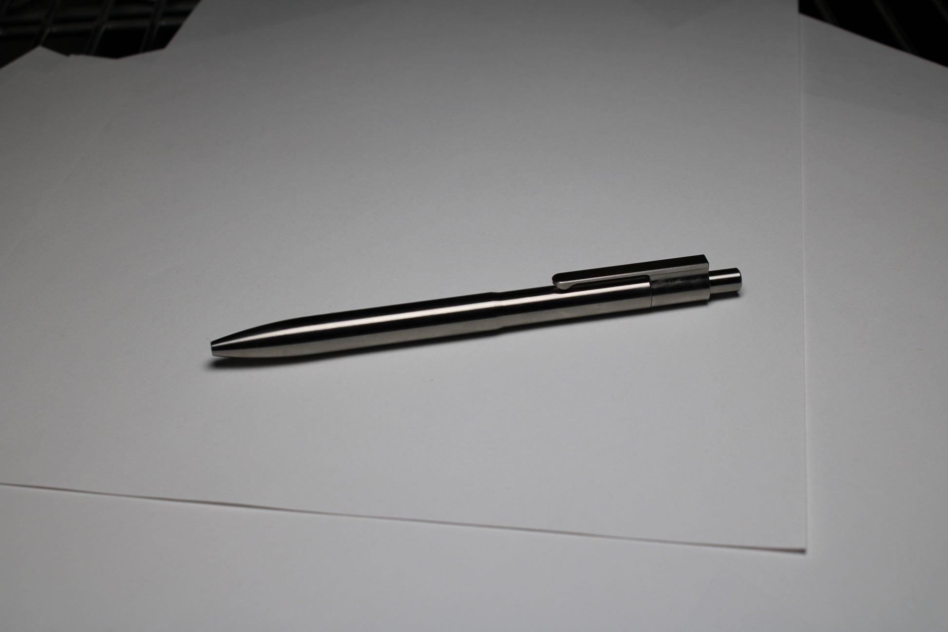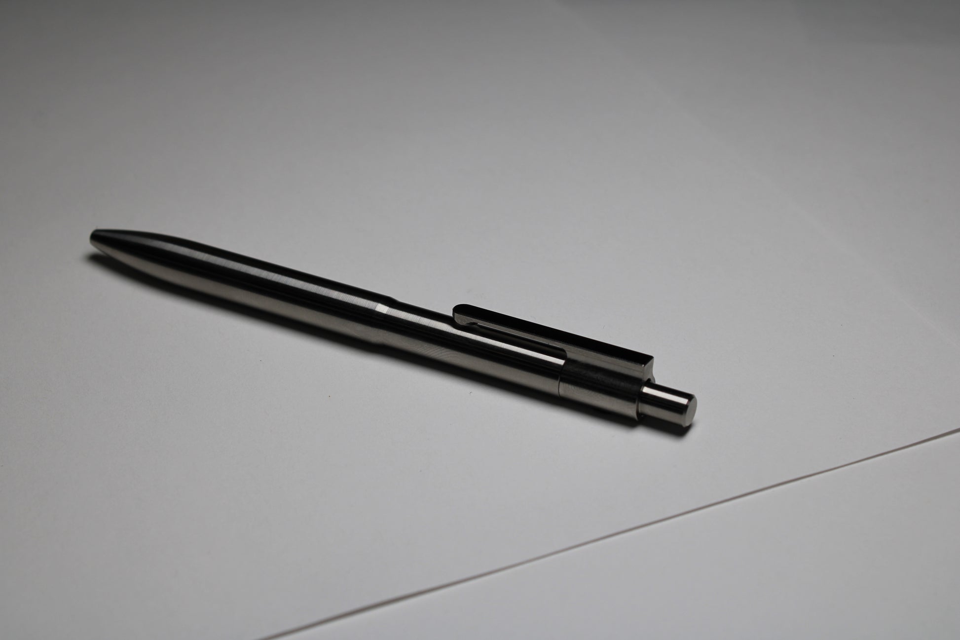 Extremely minimal and clean design coupled with the very excellent Pentel EnerGel 0.7mm refill.