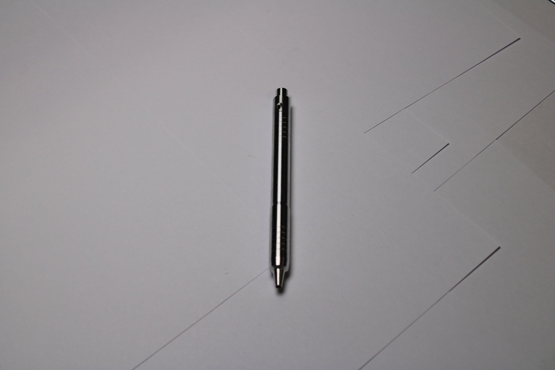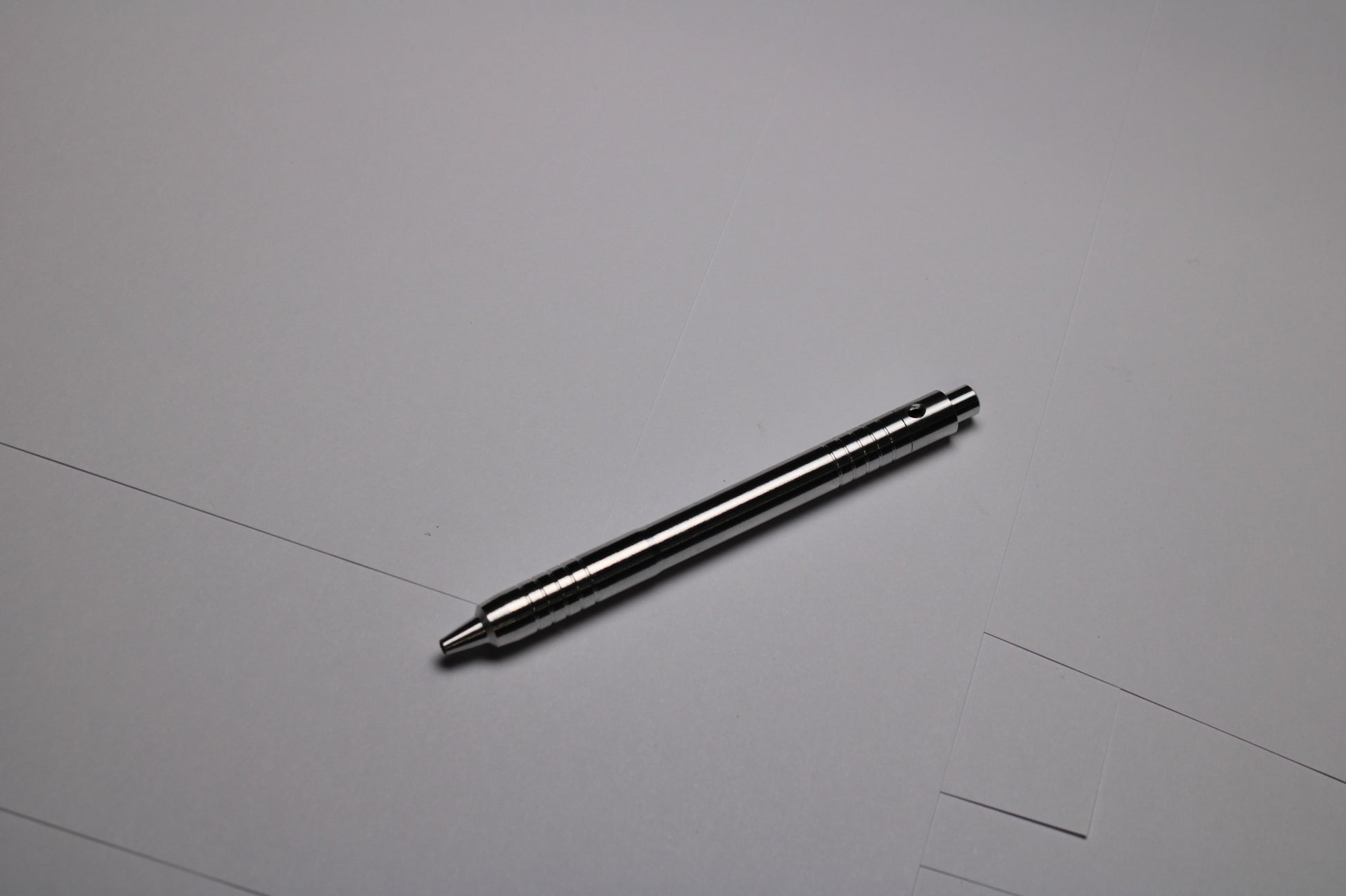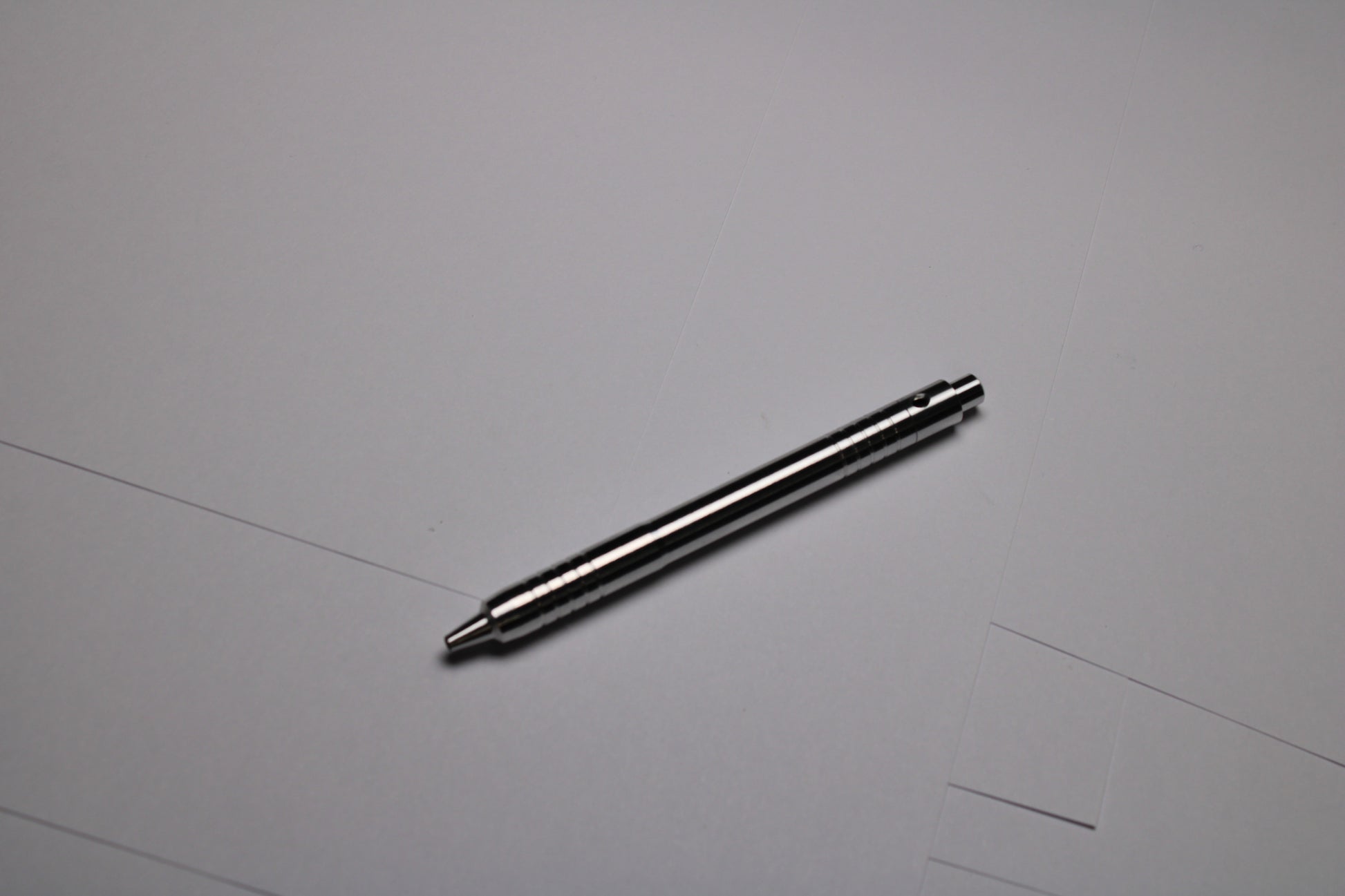 Minimal and clean design for the universal ISO G2 refill, same as the Parker. Proper allowance and a custom precision spring allow the refill to operate smoothly. The included refill is an all metal needle tip 0.5mm OHTO PG-M05NP Ceramic Roller Gel. It is my new favorite refill for this format.
