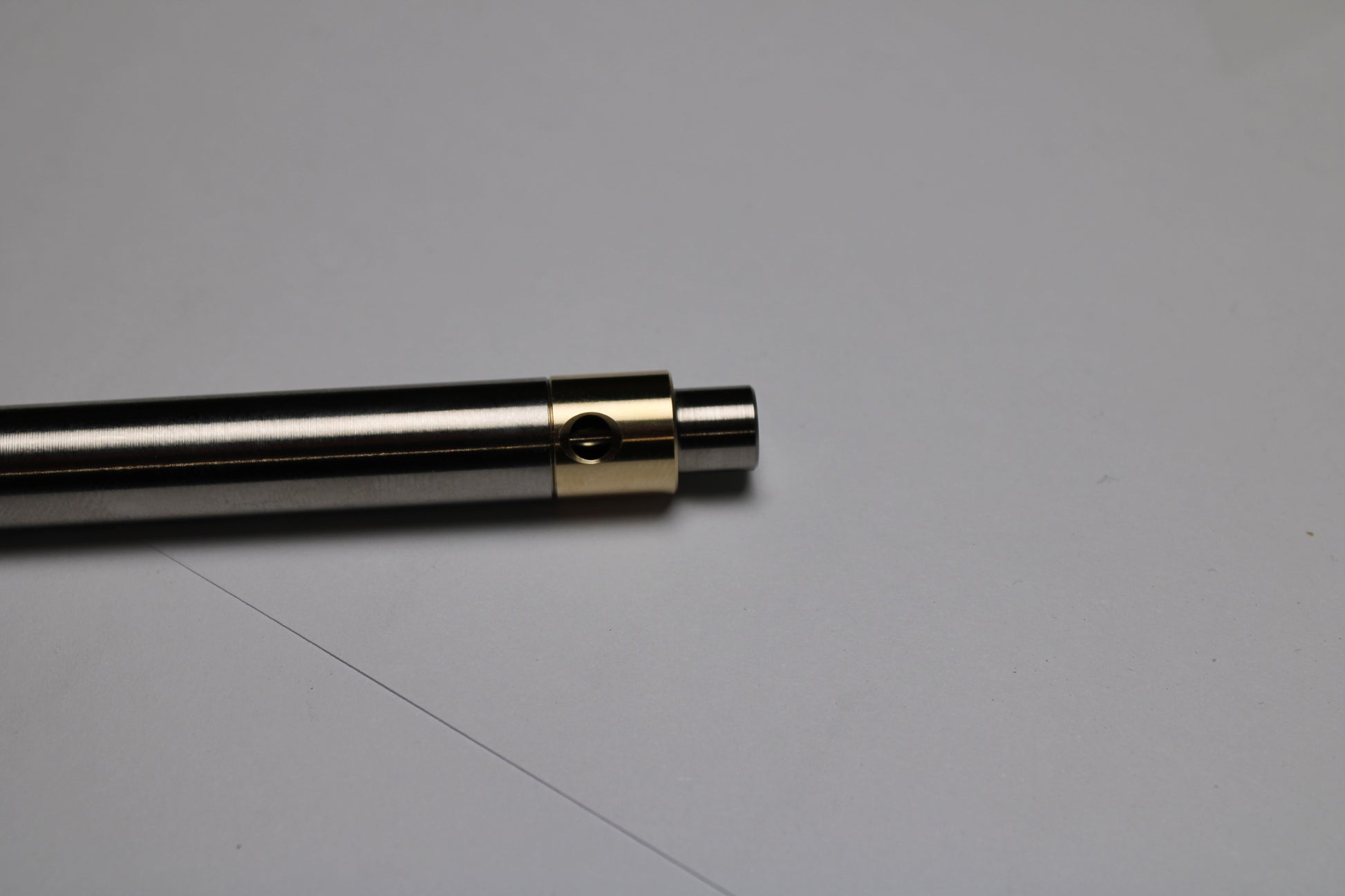 Higbee thread start to the pen body to make the thread action for replacing the refill better. Added a new locking feature that should keep the mechanism from unscrewing without the need for an o-ring or loctite.