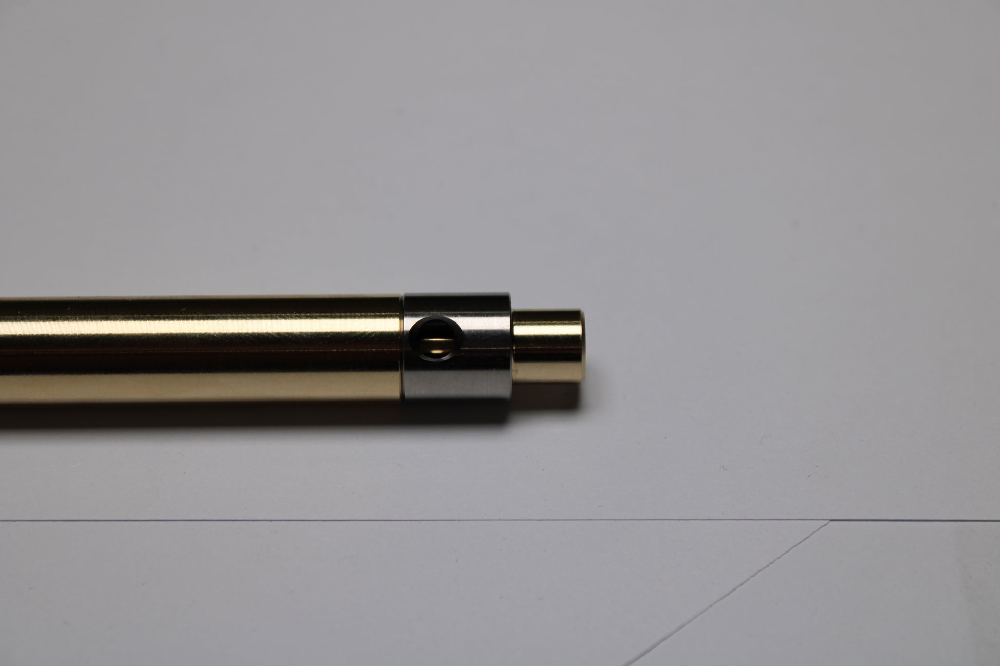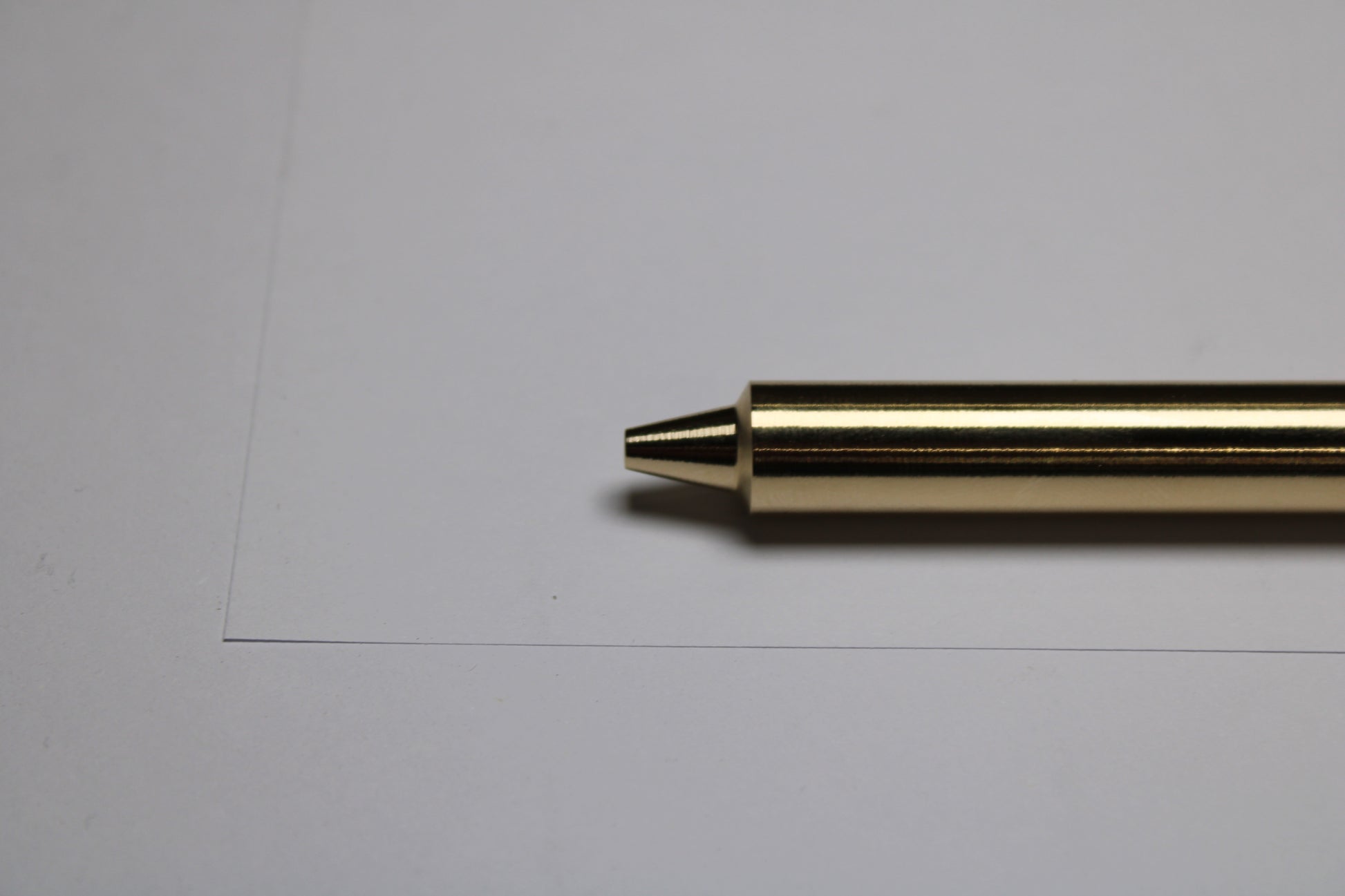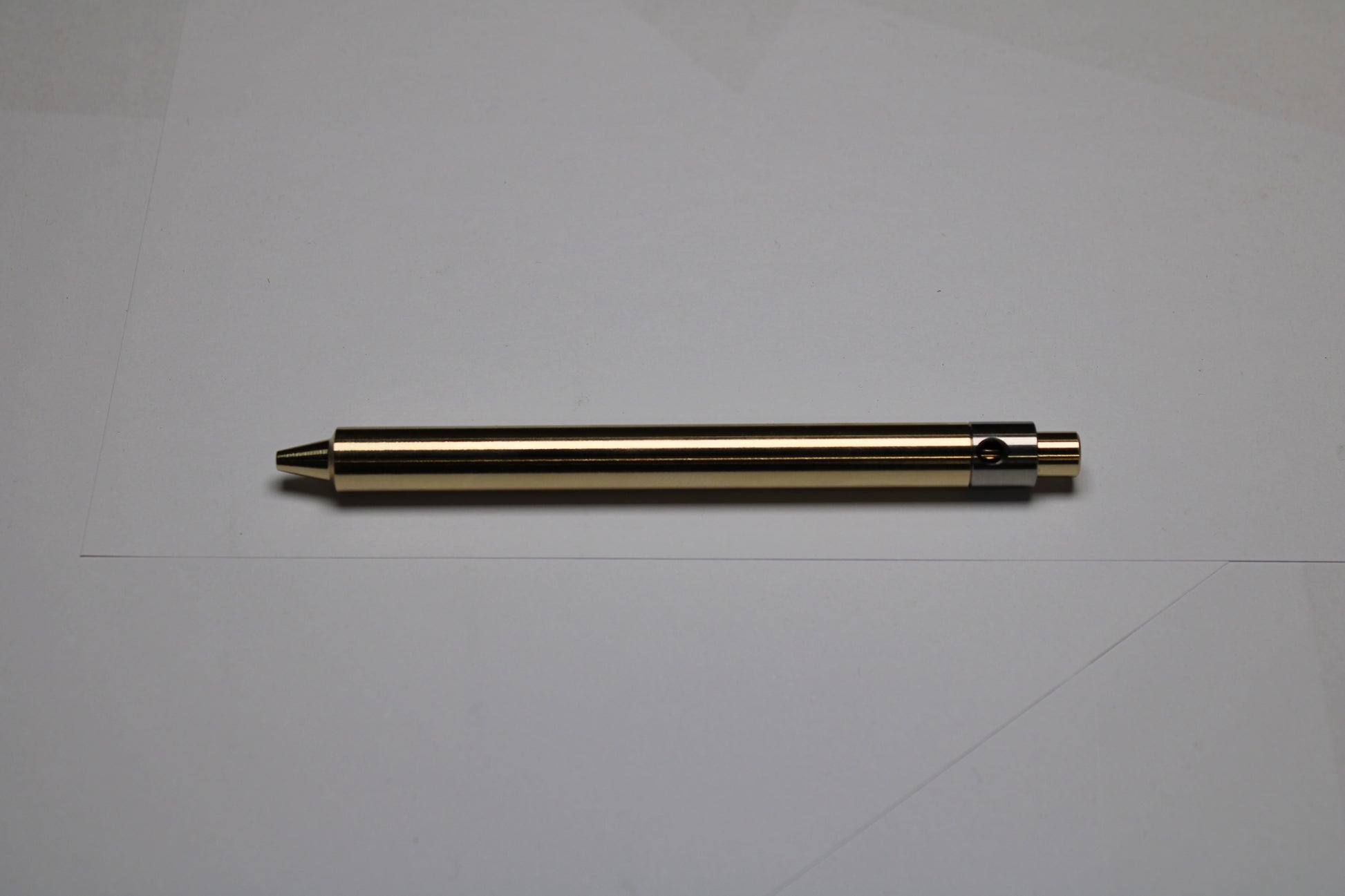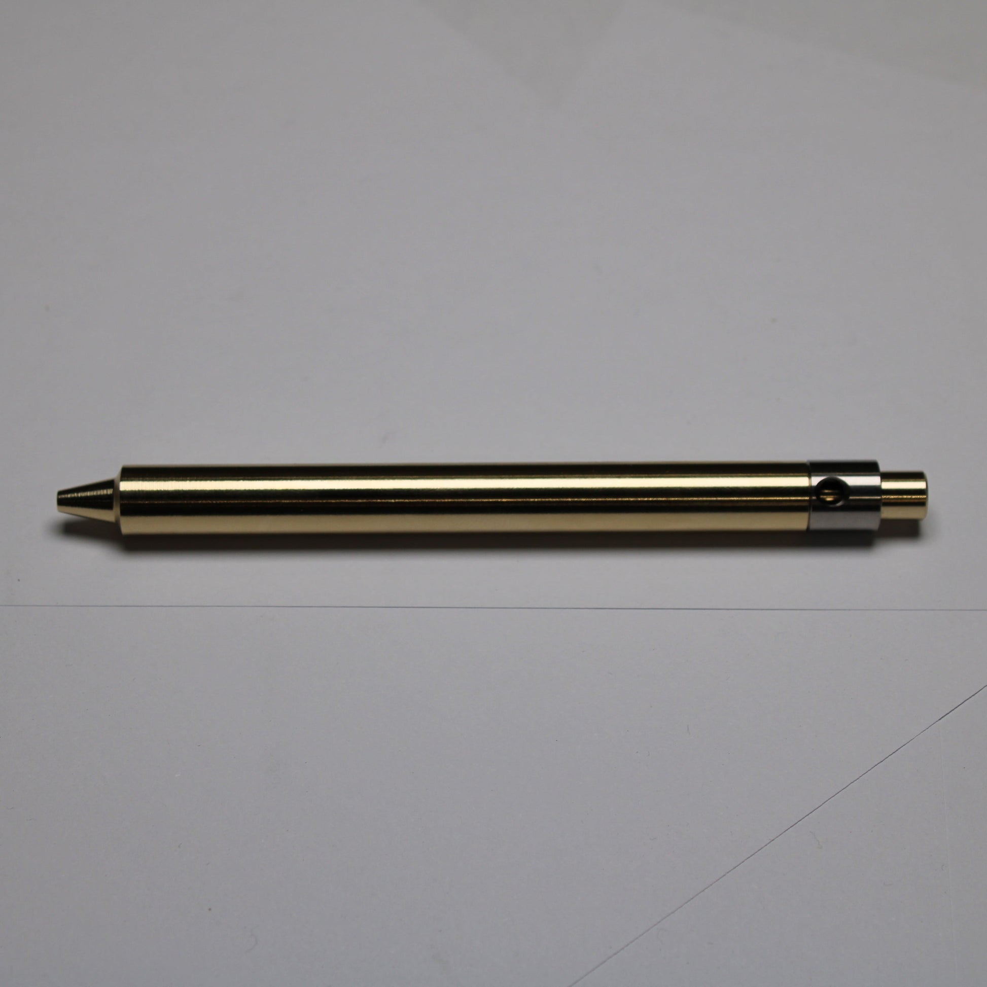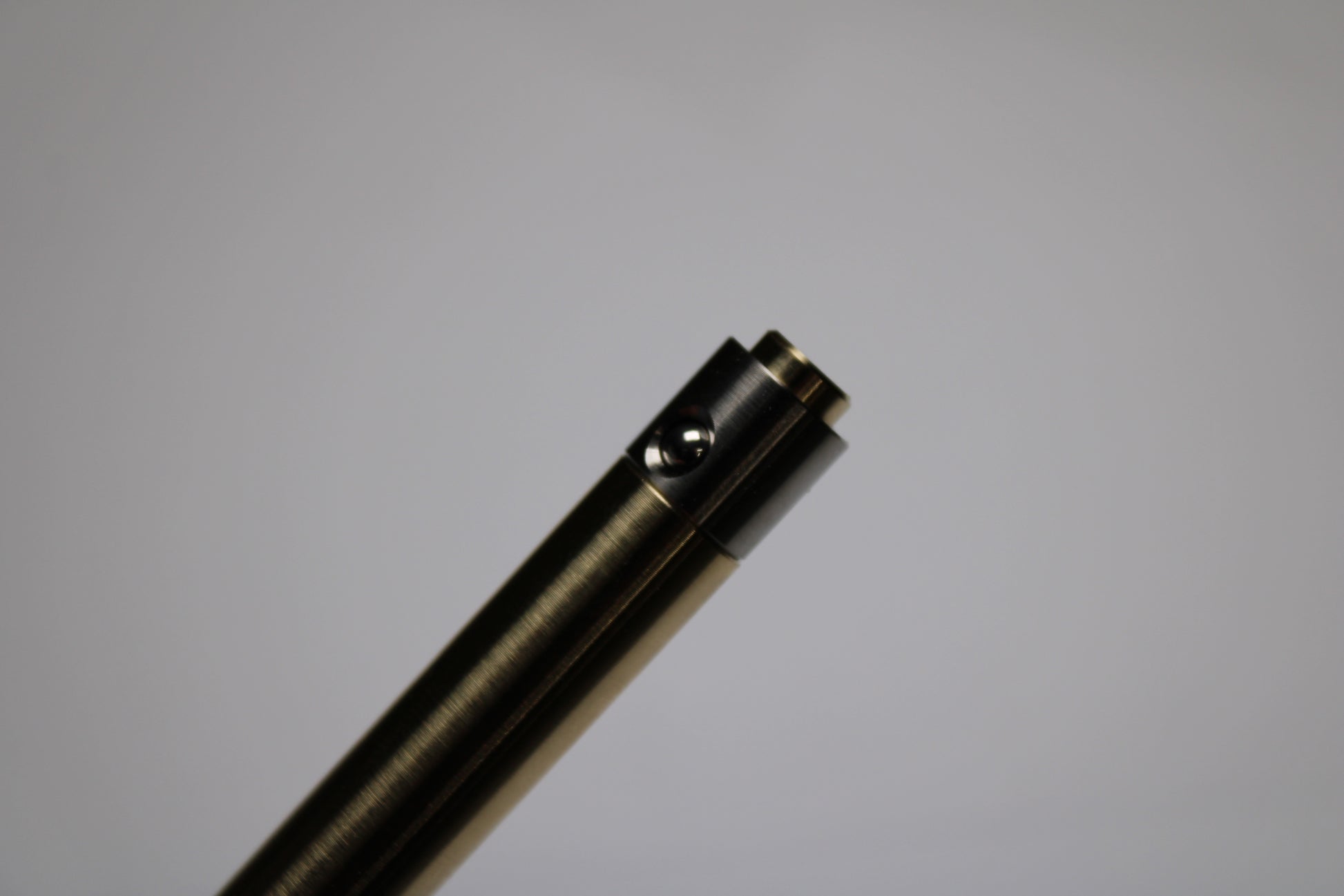 Made out of the high grade Copper alloy C63000 Aluminum Nickel Bronze. A single 0.45" (11.43mm) diameter grip, stepped nose section and continuous body finish. The mechanism comes equipped with stainless steel bearing balls. Tip details are extremely tight with a small land between the refill, and the conical section.