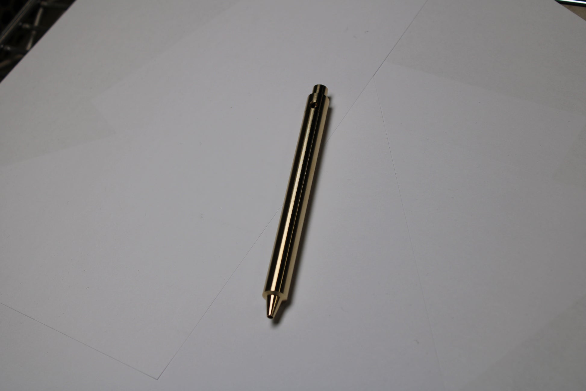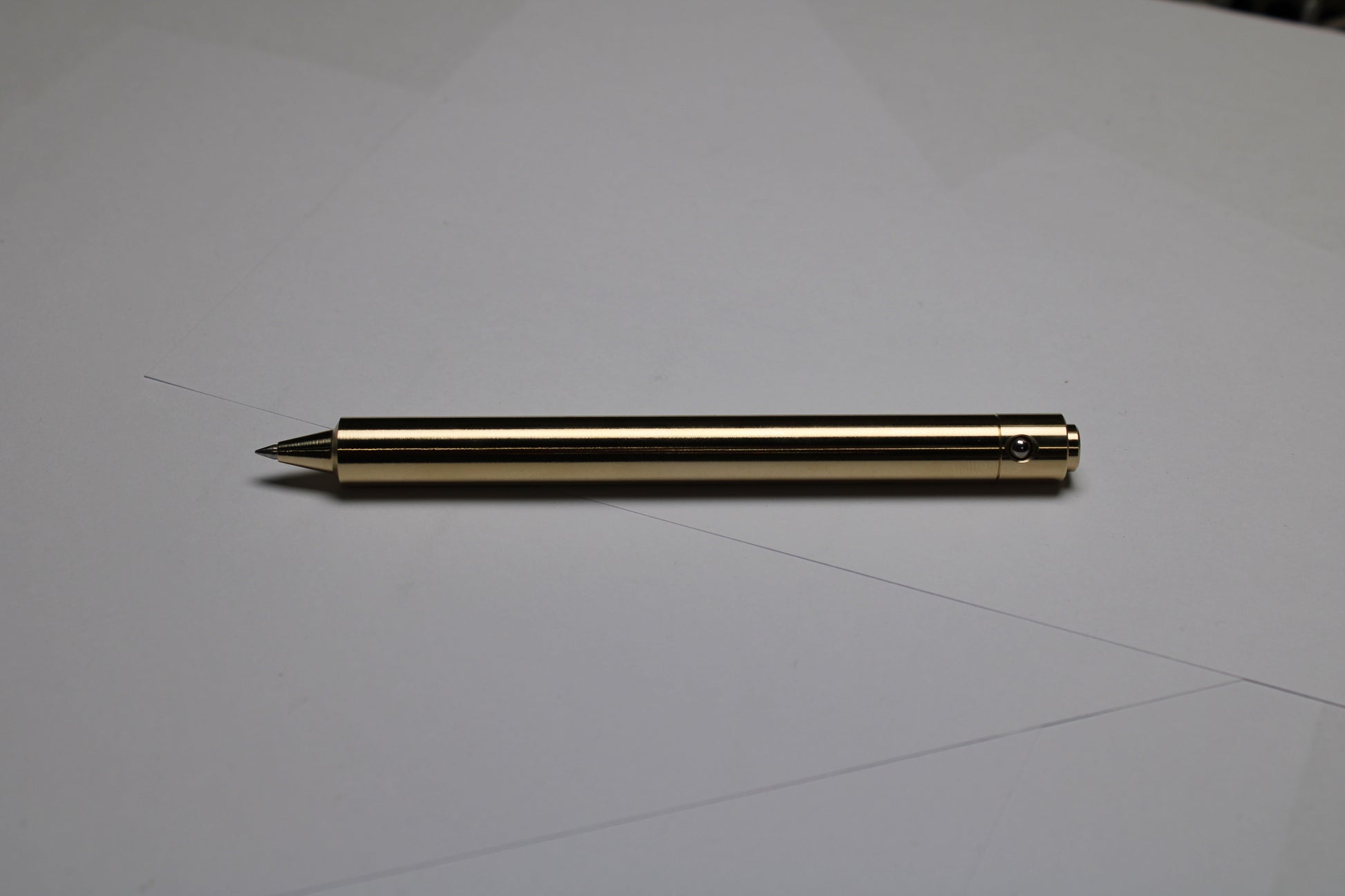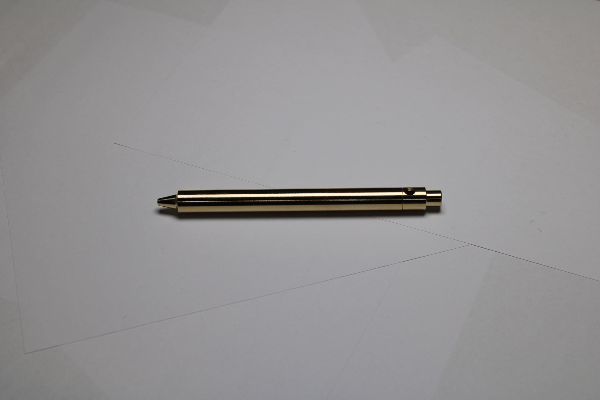 Made out of the high grade Copper alloy C63000 Aluminum Nickel Bronze. A single 0.45" (11.43mm) diameter grip, stepped nose section and continuous body finish. The mechanism comes equipped with stainless steel bearing balls. Tip details are extremely tight with a small land between the refill, and the conical section.